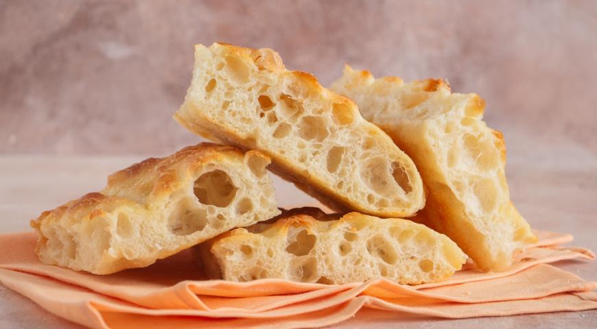 Смешать муку и дрожжи венчиком, постепенно добавить воду, в середине замеса добавить соль и оставшуюся воду. Вымесить тесто до полного увлажнения всей муки и оставить его на 20 минут, накрыв крышкой или влажным полотенцем. Через 20 минут добавить оливковое масло и вымесить тесто, пока всё масло не впитается. Сформировать колобок и оставить тесто в миске для брожения примерно на 12 часов при комнатной температуре.