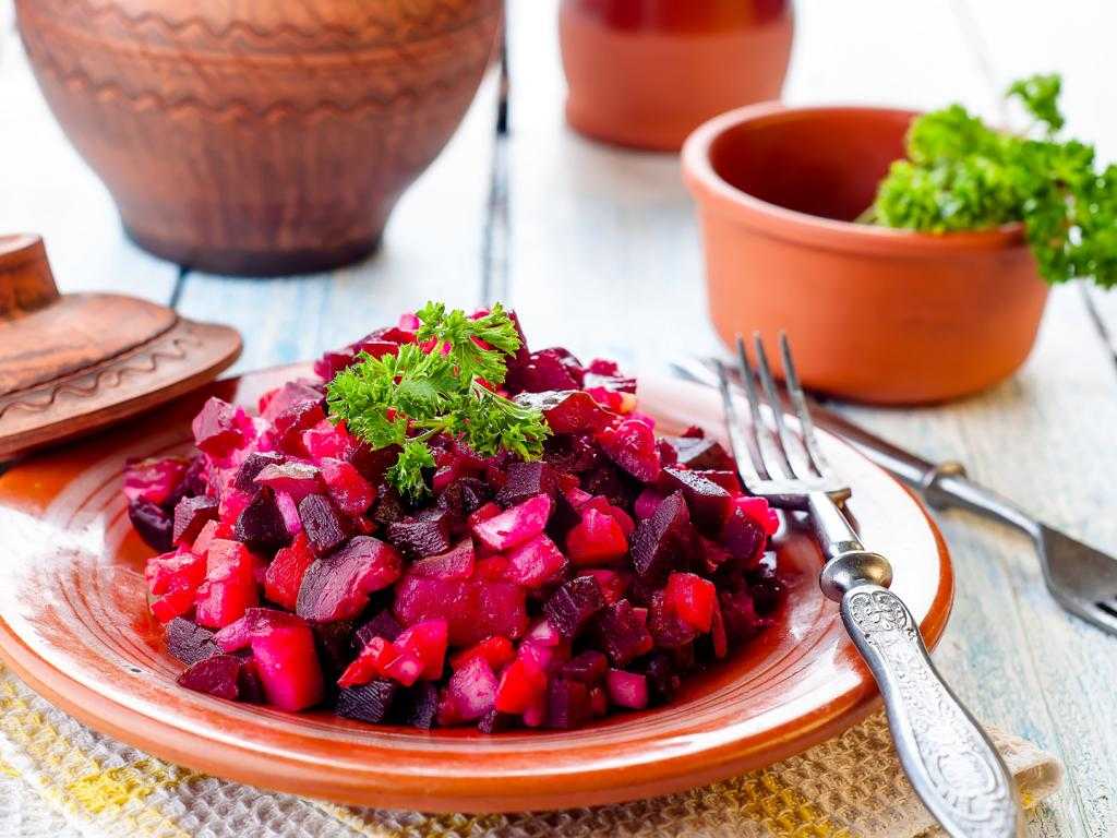Если нравятся более остро-пикантные блюда, то можно лимонного сока брать больше. Всё же и свёкла, и картофель имеют очень пресный вкус, поэтому кислоту и остроту салата можно выправлять по своему вкусу.