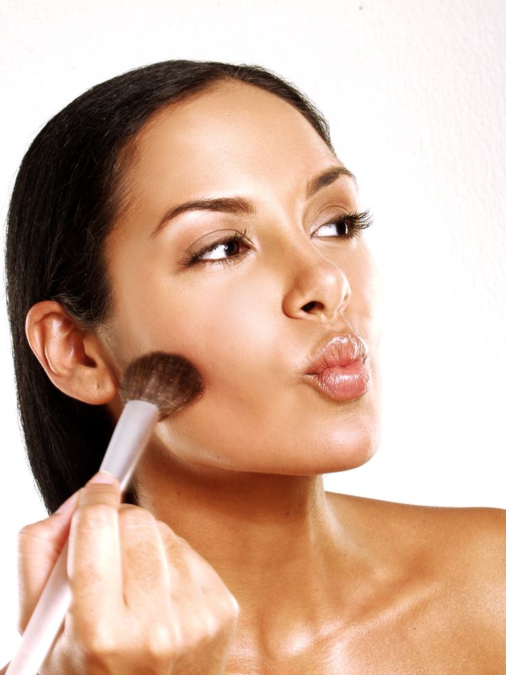Наносите бронзер только на подготовленную кожу. Обязательно увлажните ее, нанесите тональное средство и (если нужно) консилер. Зафиксируйте тон пудрой, особенно, если используете сухой бронзер. Это поможет избежать пятен и облегчит растушевку.