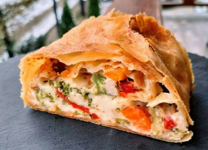 Штрудель может быть не только сладким. Его можно готовить также с мясом, чтобы разнообразить меню. При этом вы получите блюдо с нежным вкусом и в оригинальном исполнении.