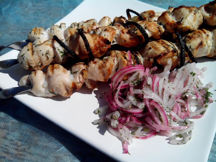 Замаринованный шашлык насаживаем на шампуры и обжариваем на углях в около 20 — 25 минут.