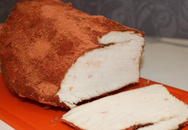 Вкуснейшее пряное мясо для бутербродов с легкостью заменит любую магазинную колбасу. Удачно, что готовить мясо достаточно просто: оставим его в бульоне со специями, подождем, пока пропитается соком и затем подготовим минут за пять.