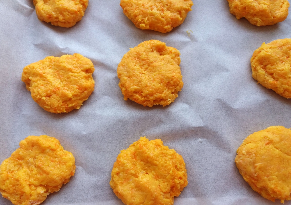 Для приготовления печенья я использую, как правило, мелко натёртую морковь. Но иногда применяю жмых, который остается после приготовления морковного сока в соковыжималке. Но в этом случае добавляю немного сока или столовую ложку сметаны.