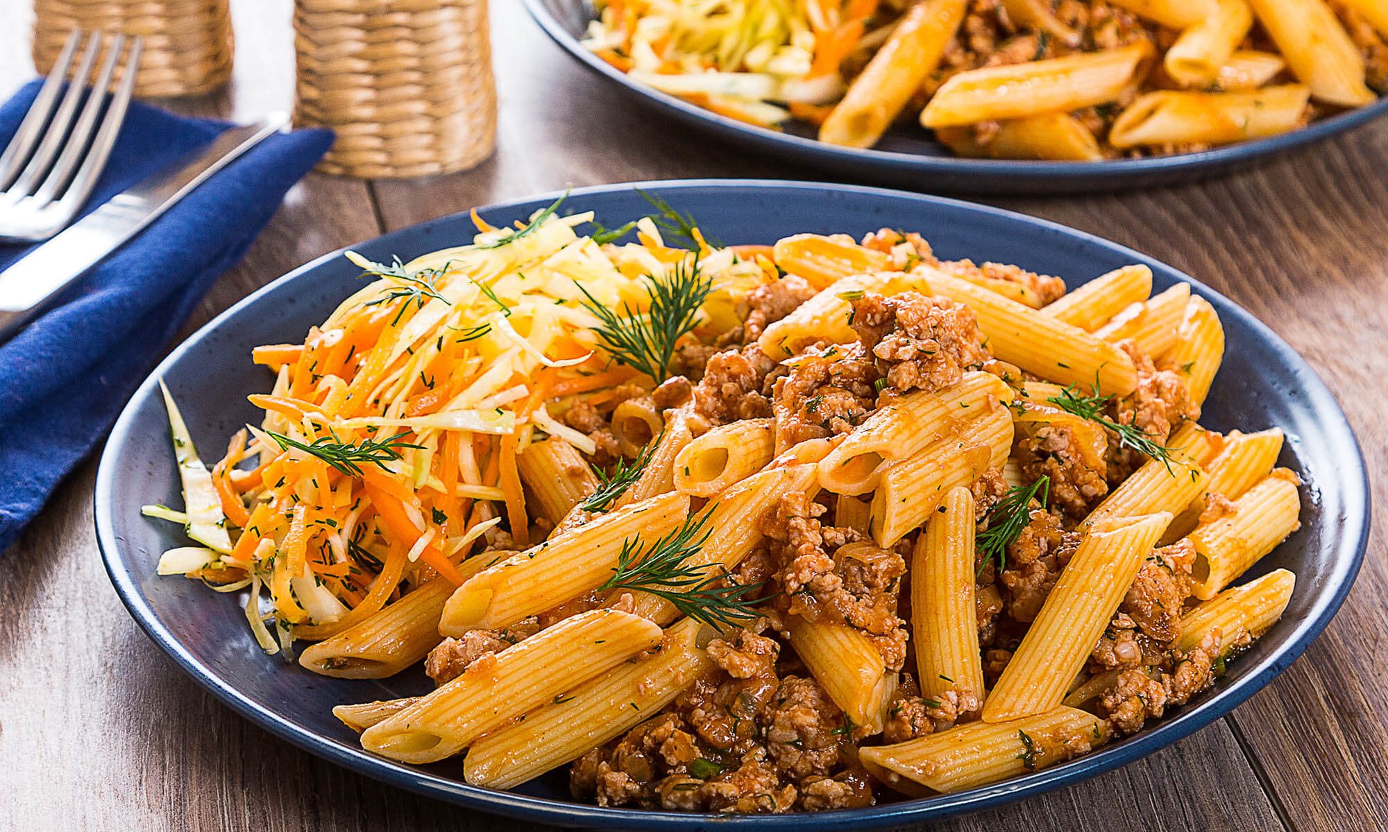 Пока мясо будет отвариваться, займитесь остальными ингредиентами. Поставьте полную кастрюлю воды на огонь, как только она закипит, посолите, выложите отвариваться макароны. Отваривайте их в течение 10-15 минут на умеренном огне, в зависимости от сорта и их размера, периодически помешивая, чтобы они не подгорели.