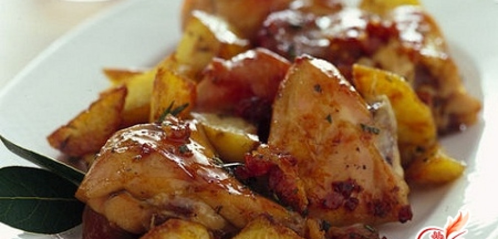 За полчаса в духовке мясо и картошка полностью дойдут до готовности. Снаружи останется аппетитная румяная корочка, а внутри и мясо и картошка будут максимально мягкими и нежными. Кроме того, за время запекания, всё напитается ароматами бекона и специй.