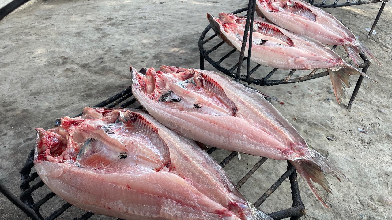 Через 10 минут рыба почти поджарилась с одной стороны, температура в тандыре очень высока. Теперь кулинар достает ее и присыпает смесью приправ, паприкой, кориандром и зирой. Чтобы специи впитались, каждую рыбу смазывают топленым маслом. На каждую рыбу выкладывается легкий салат из нарезанных помидоров и лука.