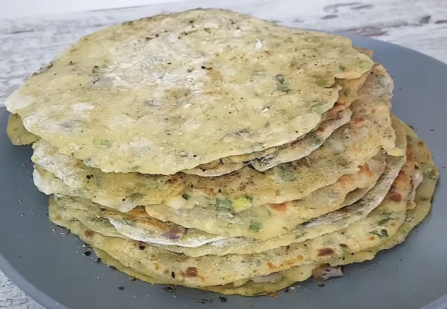Оно не должно быть жидким — можно добавить еще муки. Раскатываем отдельные кусочки теста в лепешки под размер сковороды.