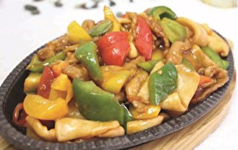 Начинку из кальмаров выложить на отбивную, накрыть сверху еще одним кусочком мяса и закрыть края.