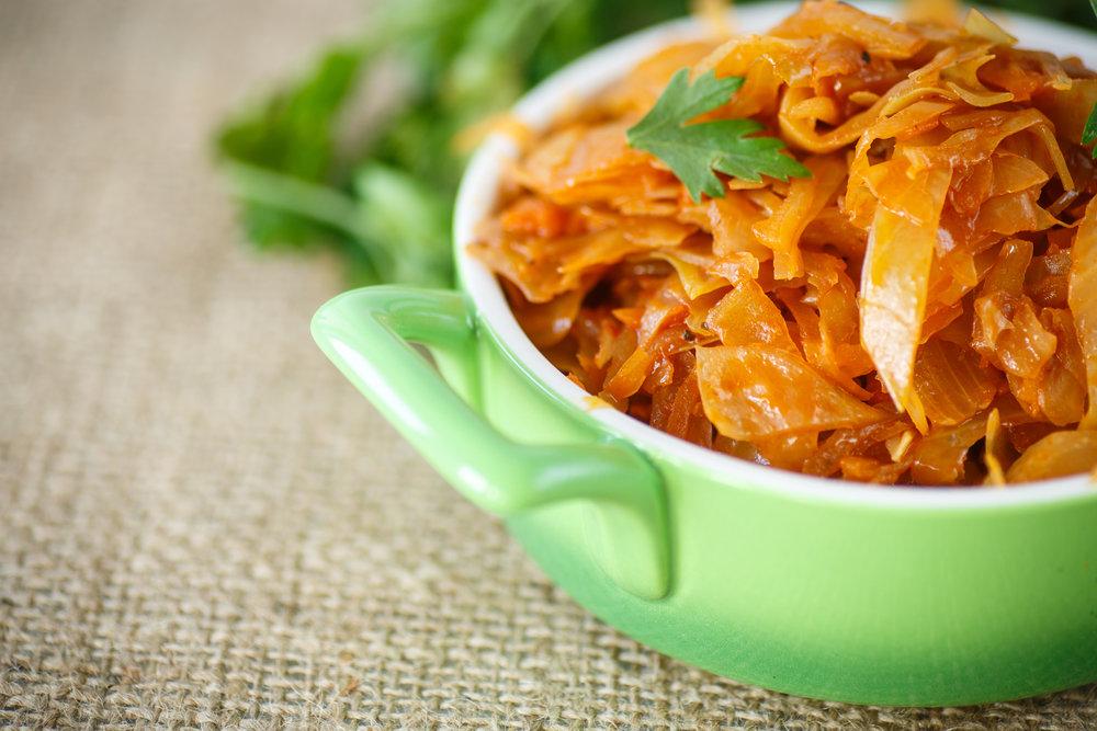 Все кто пробовал такую капусту тут же просят рецепт. Вкус действительно изумительный, капуста получается нежная, воздушная, просто невесомая. Я думала, что так много кто делает, но оказалось нет, все просто тушат капусту классическим методом. Я поделюсь с Вами своим маленьким секретом, который поможет сделать обычную капусту совсем необычной. Готовится такая капуста очень быстро и просто.