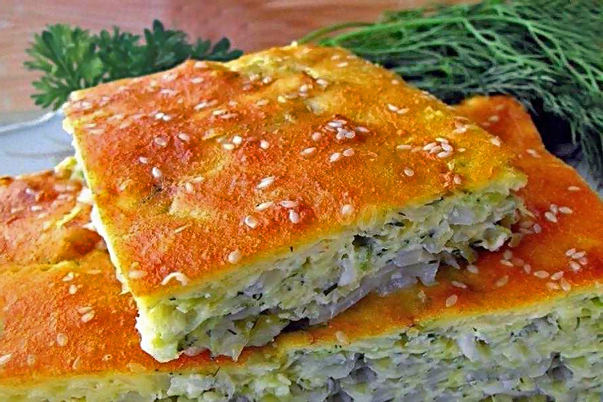 8. Убрать в разогретую духовку на 25 — 30 минут. Готовый пирог можно посыпать кунжутом.
